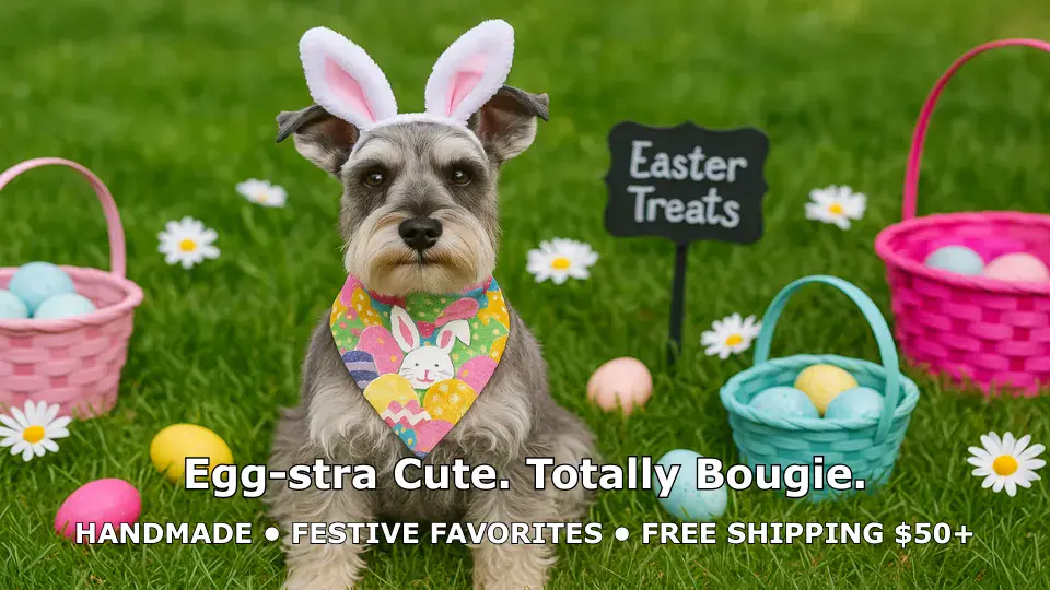 Hop into spring with our Easter Pet Accessories collection, featuring handmade designs that capture the light and pastel vibes of the season. Perfect for pets and parents who want to celebrate with a little extra charm.