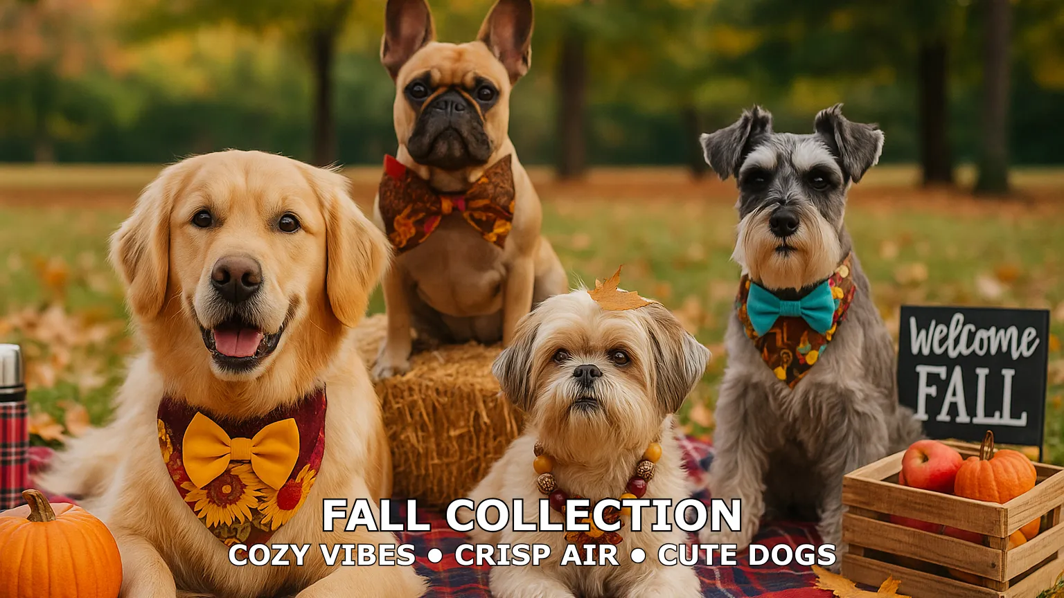 Our Fall Collection celebrates the changing seasons with pet accessories that blend rich autumn colors, rustic textures, and timeless style. These limited-edition designs are perfect for cozy walks, photo ops in the leaves, or lounging indoors while the weather cools down.