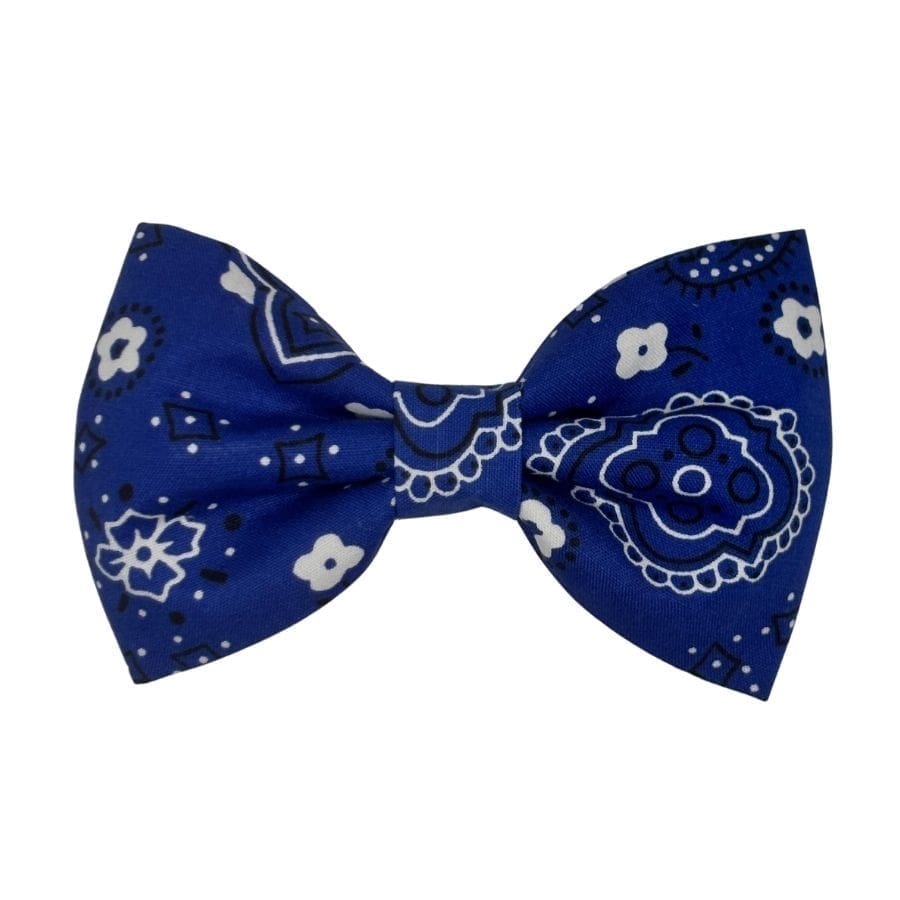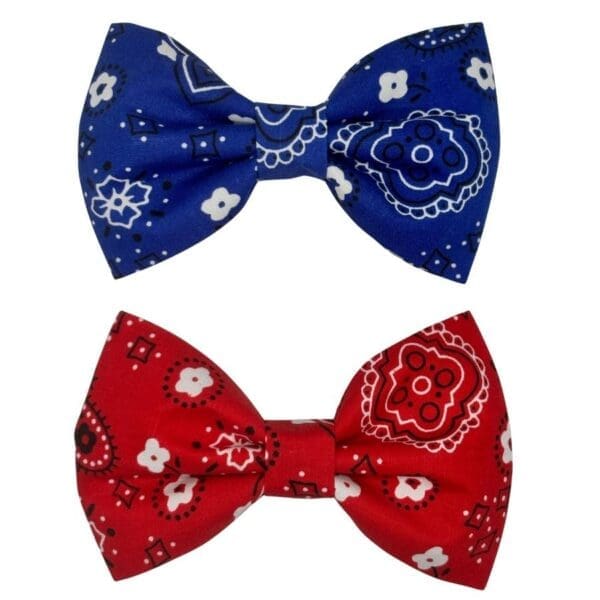 Available in three sizes to fit pets of all shapes and sizes — from tiny kittens to big, handsome dogs. Choose the Little size for small cats and tiny dogs, the Small for medium-sized dogs, or the Large for bigger breeds who deserve an equally impressive bowtie. Both the red and blue colorways feature the same bold, detailed bandana print for a look that is anything but ordinary.