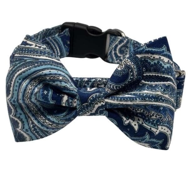 Blue Paisley Bowtie Adjustable Dog Collar