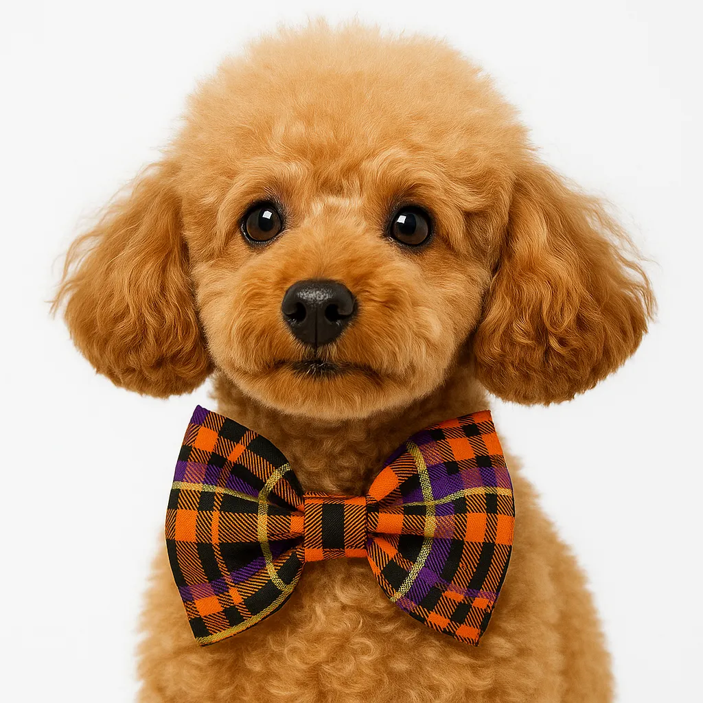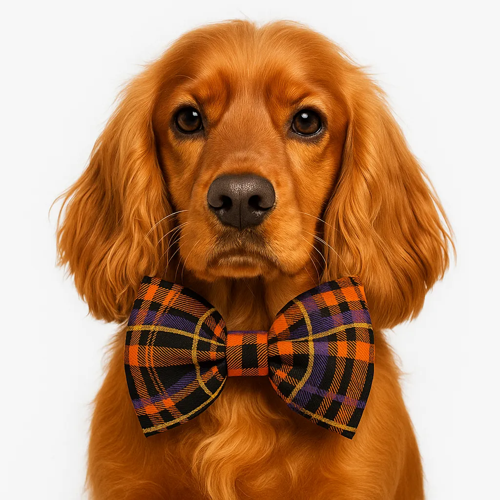 Give your pup the ultimate Halloween glow-up with the Cauldron Cutie Bowtie for Dogs. This vibrant accessory features a bold orange-and-purple plaid with subtle gold accents, perfect for spooky soirées or fall photo ops. Whether they’re strutting through a costume parade or greeting trick-or-treaters at the door, this bowtie adds just the right amount of haunted charm.