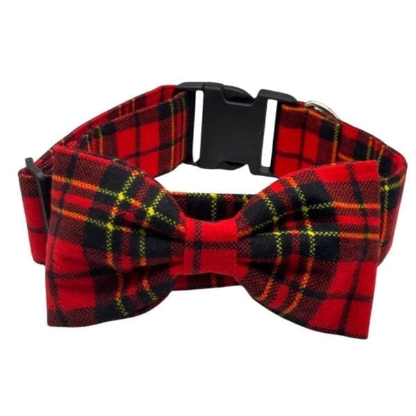 Festive Fireside Plaid Bowtie Adjustable Dog Collar