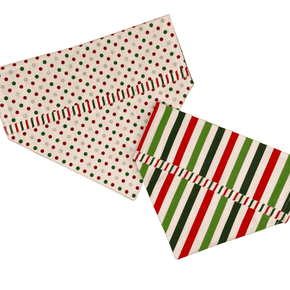 Holiday Dots and Stripes Reversible Over the Collar Bandana: Double the Festivity, Double the Fun!
