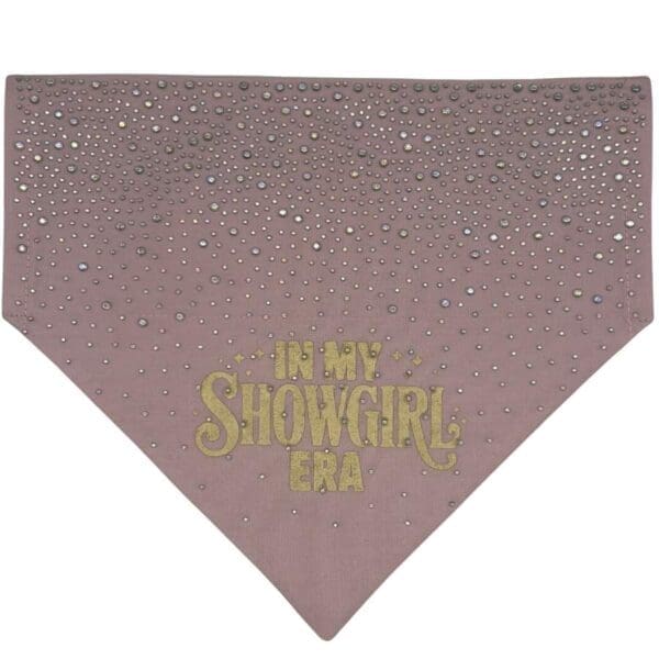 This double-layer cotton blend bandana is all about sparkle and sass. The bold “In My Showgirl Era” gold vinyl design is paired with a field of hand-placed heat-set rhinestones, giving it a luxe boutique finish. Designed to slide easily over your dog’s collar, it eliminates bulky knots and stays comfortably in place—even during dramatic twirls or zoomies.