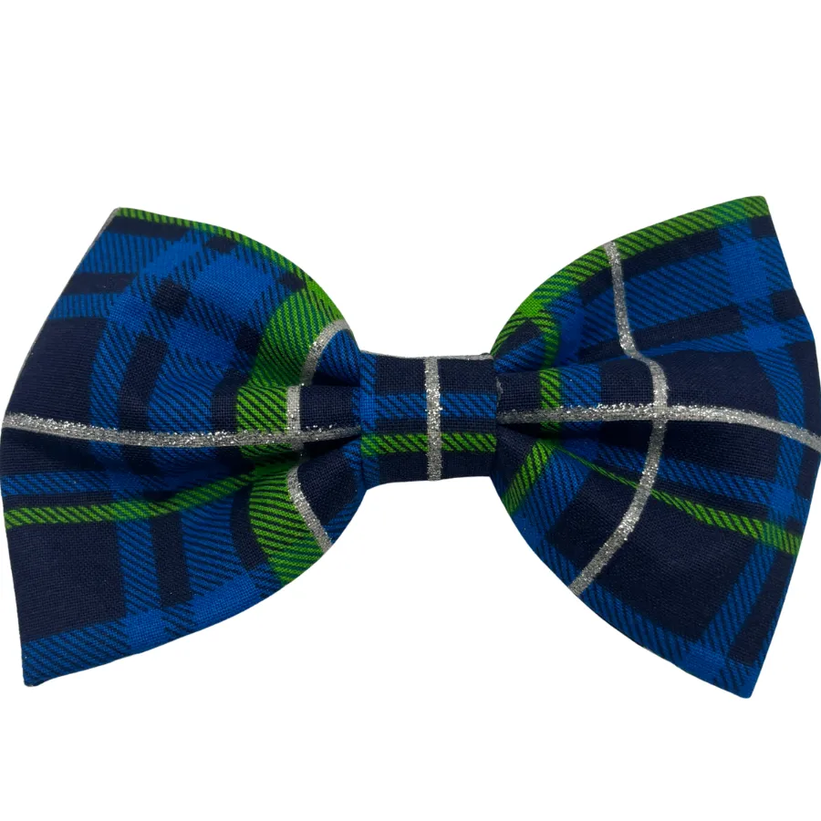 - Bold blue, silver, and green plaid