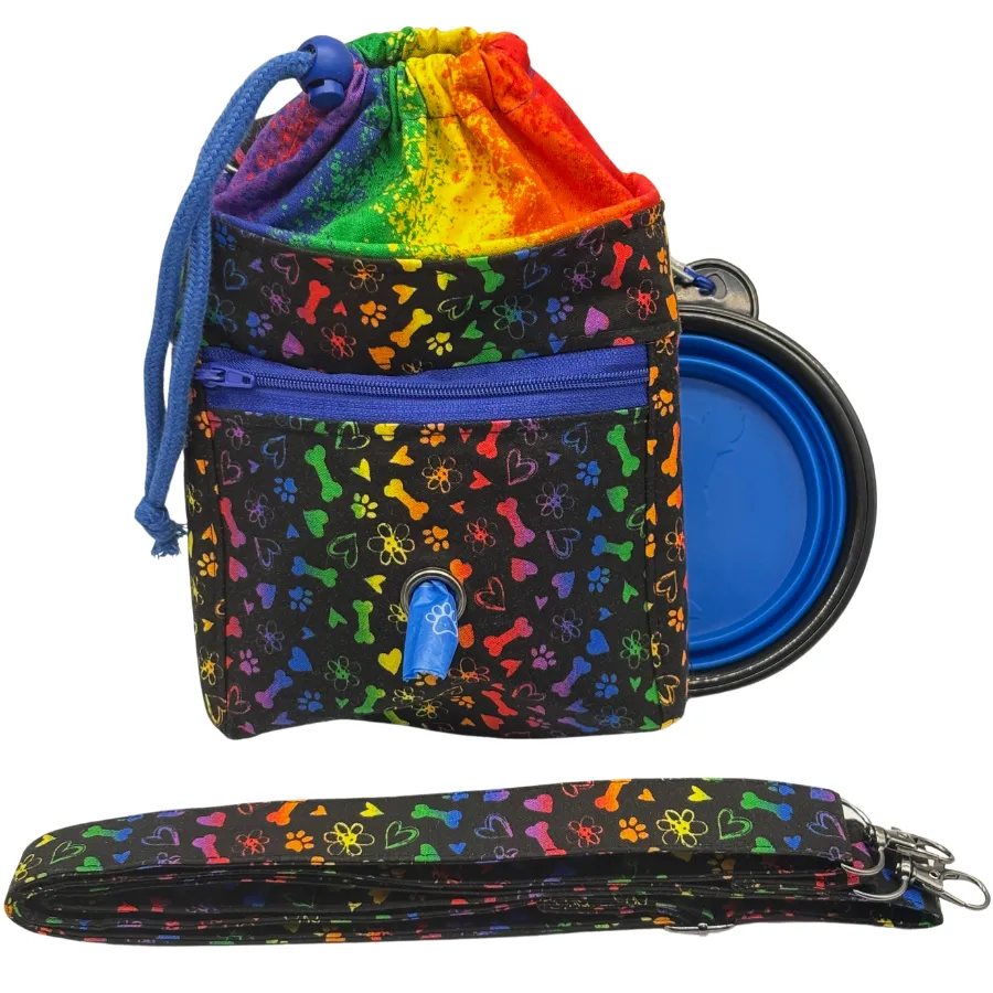 The Pride Pawty Doggy Training Bag makes every outing easier—and more fabulous. Celebrate your love for your pup and your community with a bag that’s as bright and bold as your best friend.