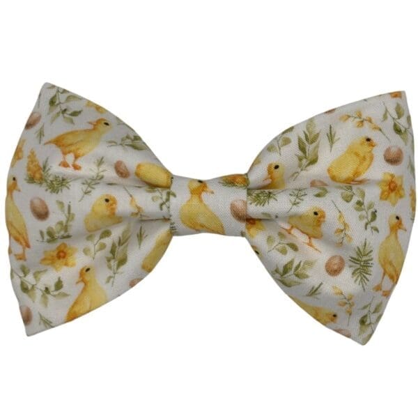 Spring has arrived and your pup deserves to celebrate in style. The Ruffle My Feathers Bowtie is a charming seasonal accessory that brings the sweet energy of Easter morning right to your dog’s collar. Featuring a watercolor print of fluffy ducklings, baby chicks, speckled eggs, and fresh green botanicals on a crisp white background, this bowtie is the kind of handmade treasure that makes every tail wag a little harder. Whether you are heading to an Easter egg hunt, a springtime brunch, or simply a neighborhood walk, your pup will be the most fashionable furball in the crowd.